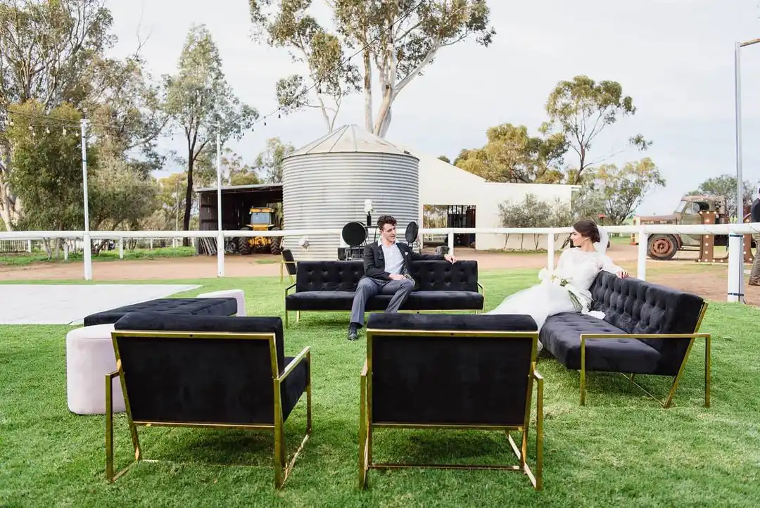Neutral lounges (black, white, timber accents) pair beautifully with festive styling, brand colours, or end-of-year themes. For outdoor corporate functions in Perth’s warm November–December evenings, luxe lounge settings elevate the guest experience instantly.