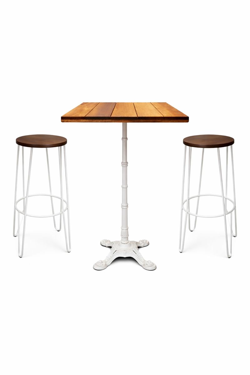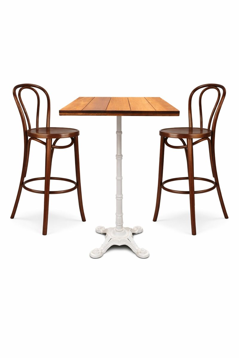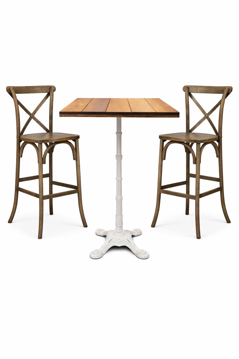 Our Paris Bar Tables feature classic cast iron legs and a 110 cm bar height, perfect for cocktail-style events. Finished to match our dark oak tables, they offer timeless Parisian style with excellent stability — ideal for weddings, corporate events, and outdoor celebrations across Perth.