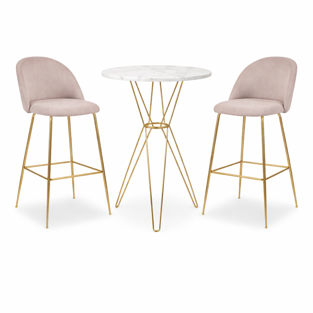 Sleek, modern and contemporary metal bar table finished with a gold frame marble top. Combine with our black velvet bar stools